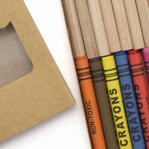 Set of 19 pieces in natural cardboard case with window and inside tray.