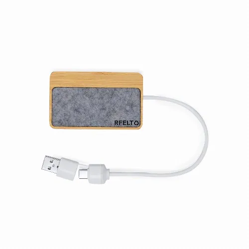 USB 2.0 port made of bamboo and RPET felt.Including Type-C port and 2 USB ports, with dual USB/Type-C input.