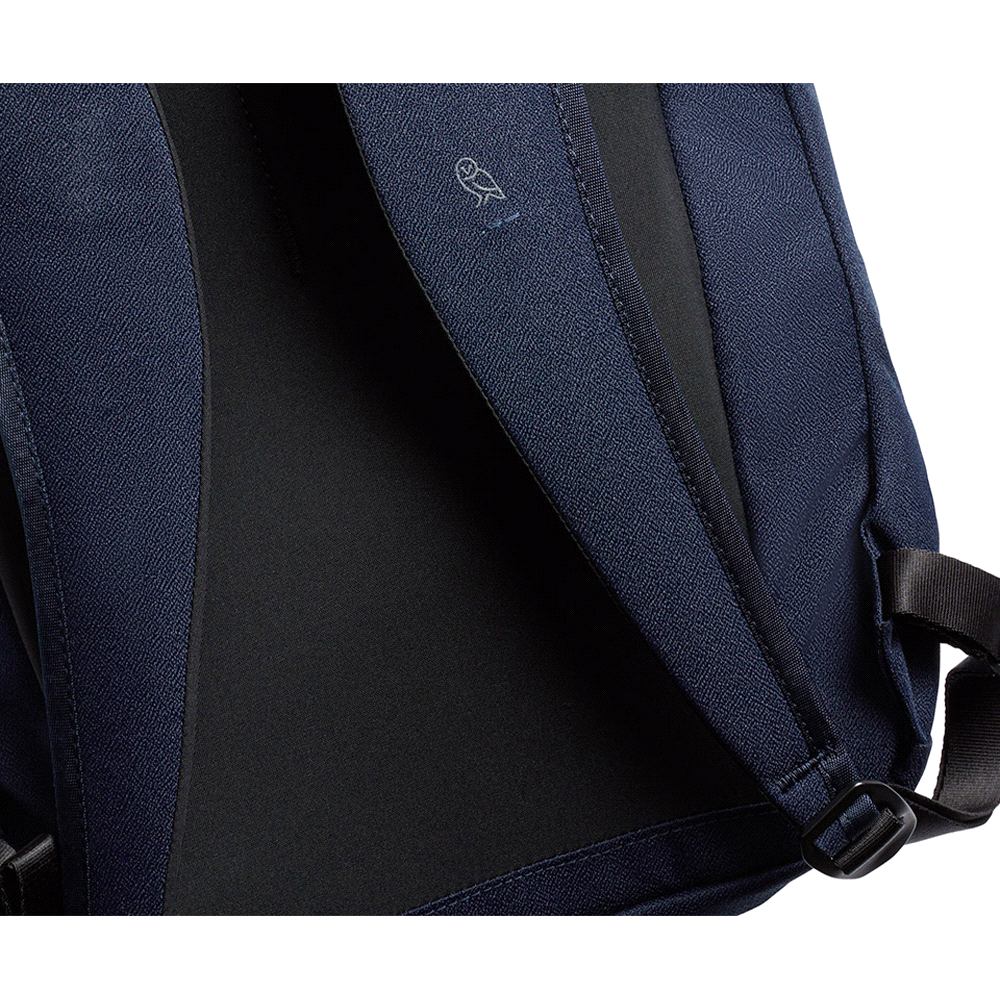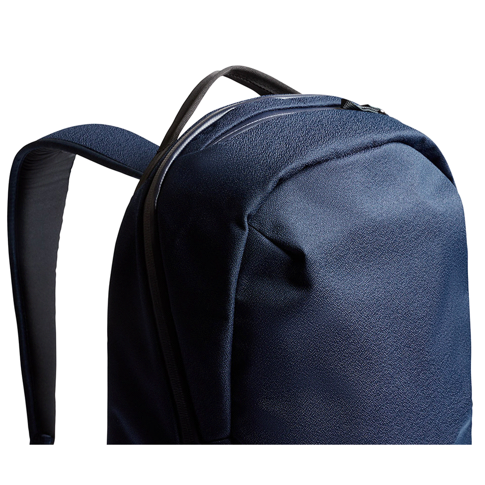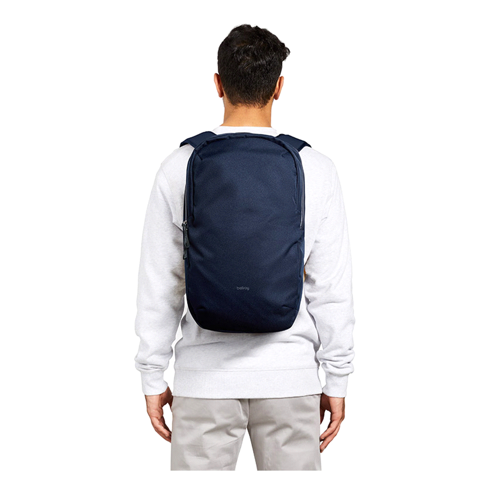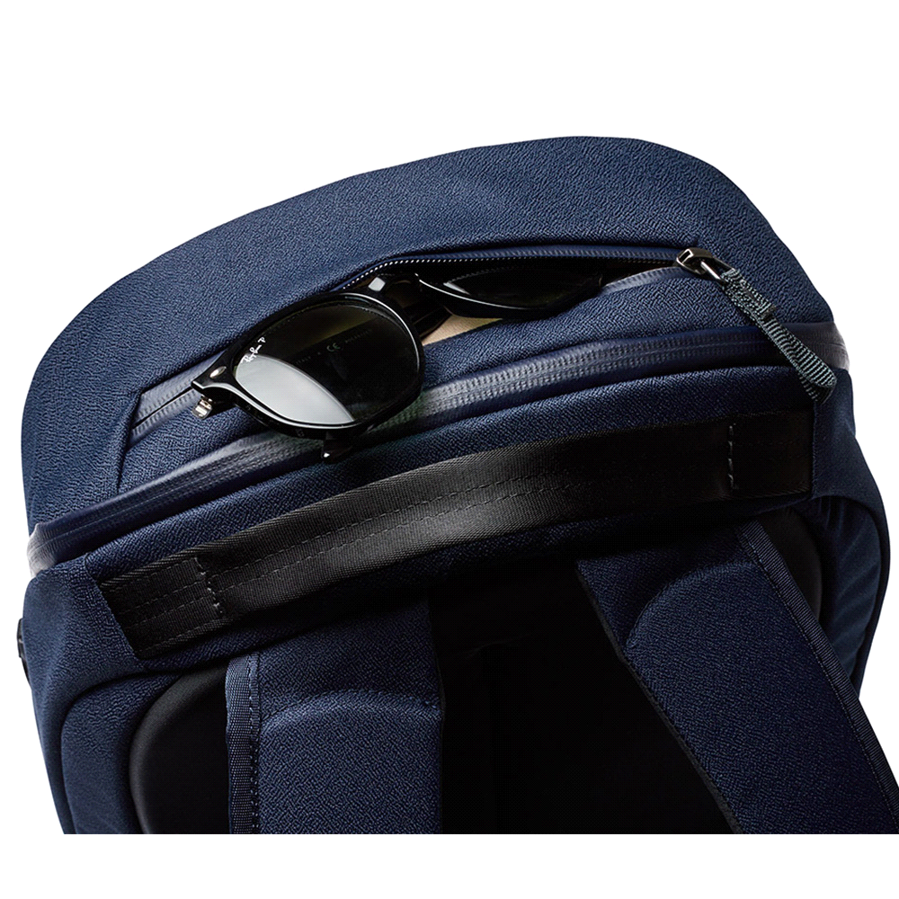 Eco Friendly Product. The Bellroy Via 16 Laptop Backpack is designed for life to, from and in the office, with clever access and all-day comfort. This clean, minimalist backpack features a zippered main compartment with a padded 16 laptop sleeve and a dropdown front panel access with an internal mesh zip pocket and built-in key clip. The raised mesh sunglasses pocket helps keep your valuables safe. Carry using the contoured padded back panels and harness, or grab with the strong rolled-edge webbing grab handle. Water-resistant zippers and fabric.