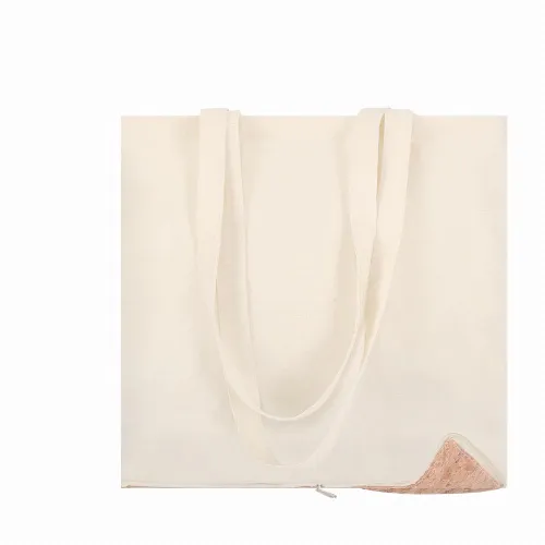 Folding bag of nature line in combination of cotton materials of 110 g/m2 and natural cork base, with pocket.