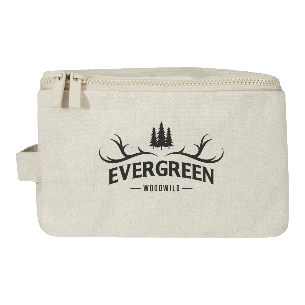 Made from 500 g/m recycled cotton and recycled polyester Spacious main compartment Secure zipper closure Multiple interior slip pockets Versatile use for toiletries, socks, chargers, etc. Keeps luggage organised Includes Aware tracer with QR code for supply chain transparency. Packaging: Bulk. Materials: 70% Recycled cotton, 30% Recycled Polyester