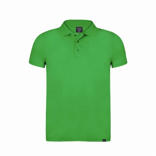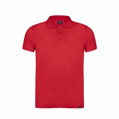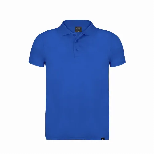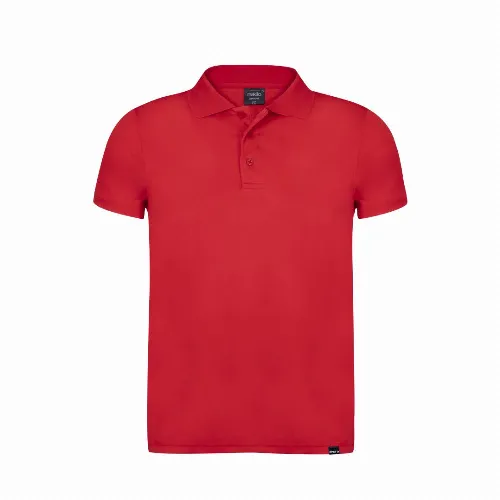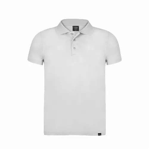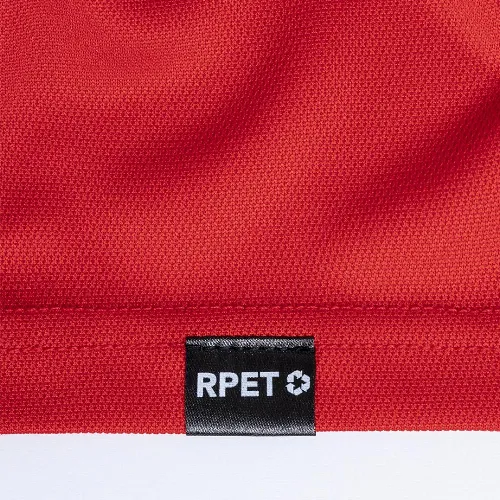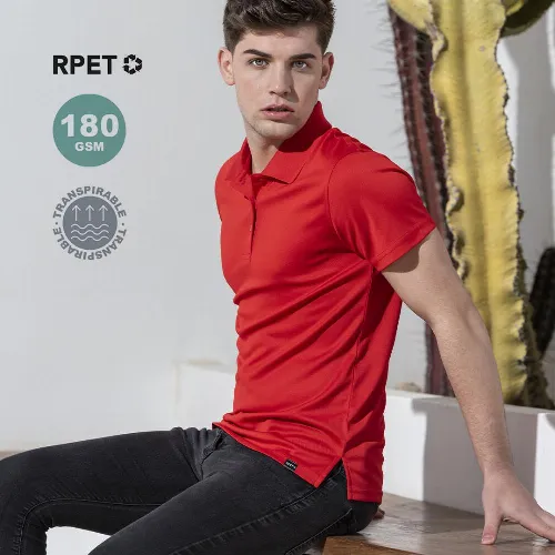 Breathable polo shirt in 100% polyester RPET material of 180g/m2, made from recycled plastic to encourage the reuse of plastic waste and contribute to the sustainability of the planet.