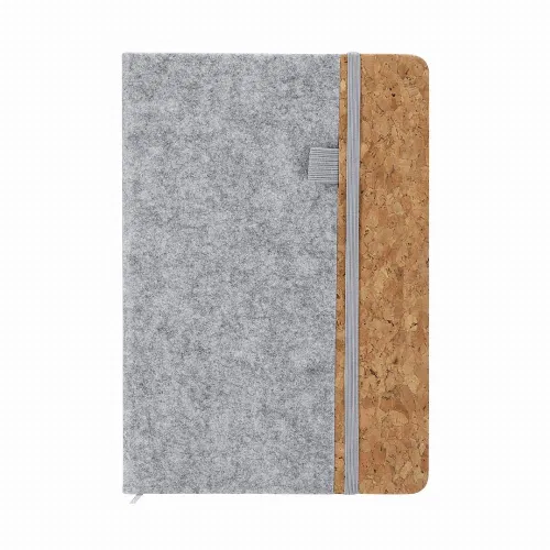 Notebook with hard covers made of a combination of RPET felt and cork.