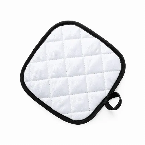 Kitchen grip in soft 100% polyester material with soft white finishing and bright toneed piping.