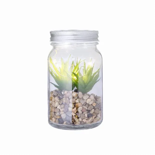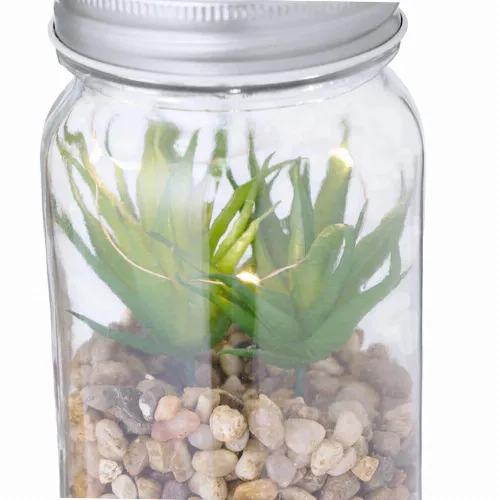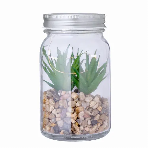 Decorative plant on a base of stones, in a borosilicate glass jar.