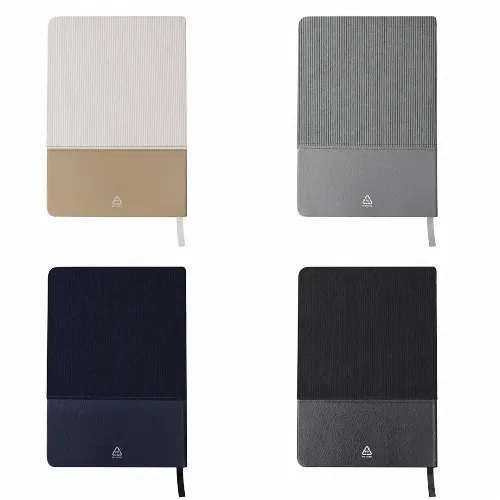 A5 notepad made of soft polyester corduroy and recycled PU.