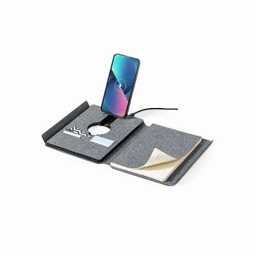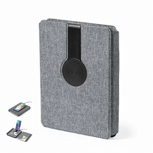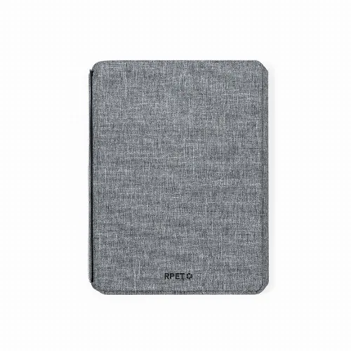 Multifunctional folder/notepad with magnetic closure, made of 300D RPET polyester, obtained from recycled plastic.