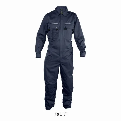 Resistant and functional multi-pocket overall with reversed double sliders and practical side openings.Available