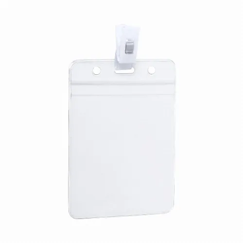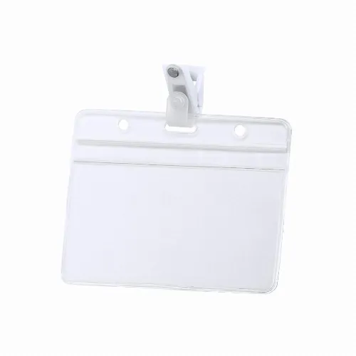 Name tag embossed in PVC with fixing clip in white.