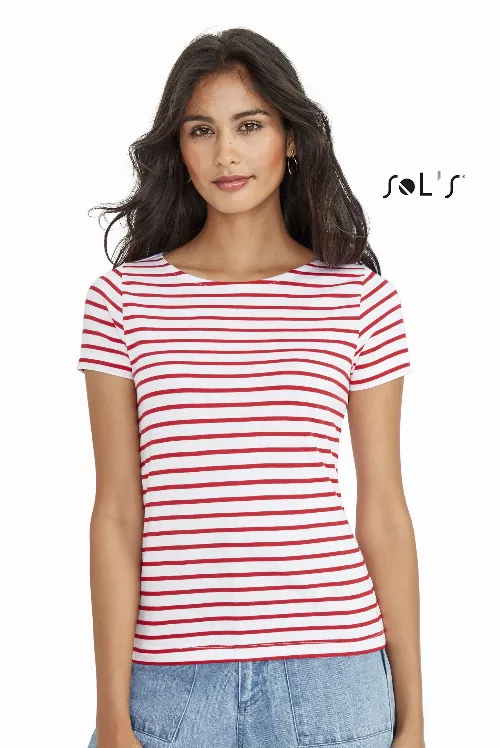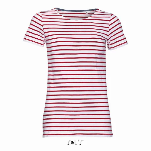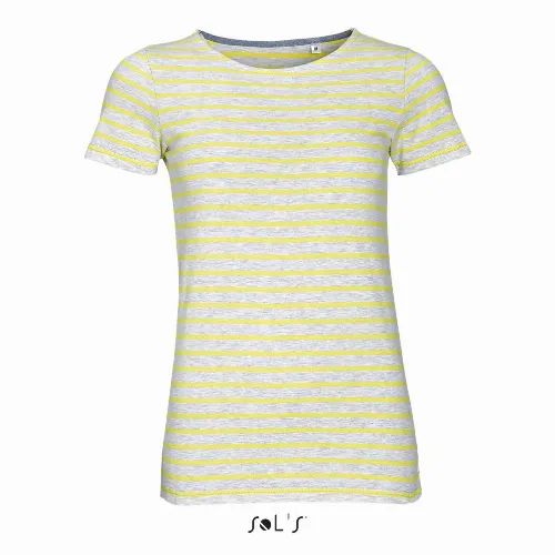 T shirt women s round neck with striped pattern combed cotton MILES