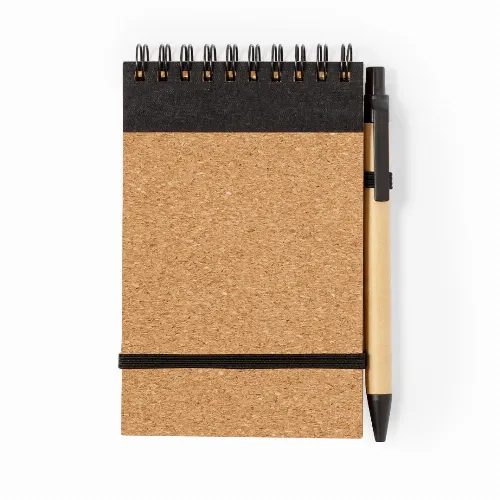 Notebook and ball pen set made of cork and recycled cardboard.