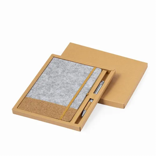 Notepad and ball pen set made of RPET felt and recycled Aluminium.