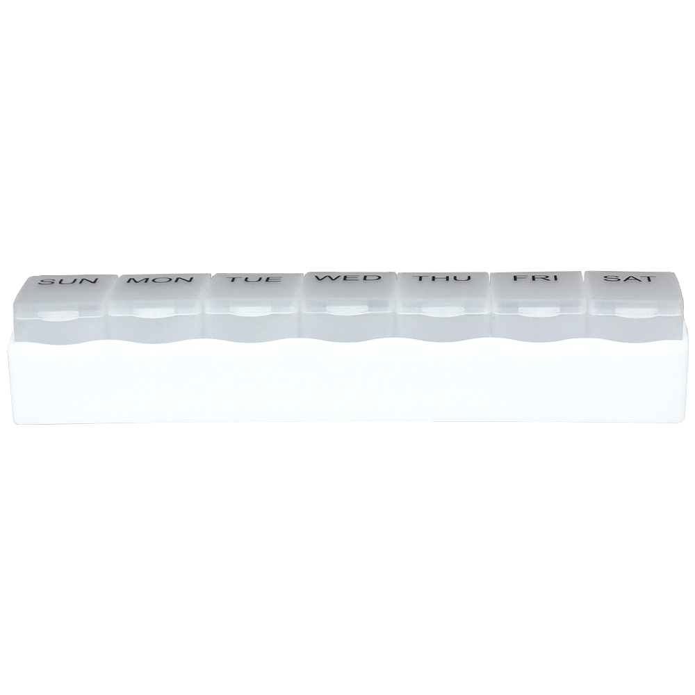 Keep your medication or supplements on track with this compact, travel-friendly weekly organiser. Easy-to-use pop out individual compartments for each day help you never miss a dose.